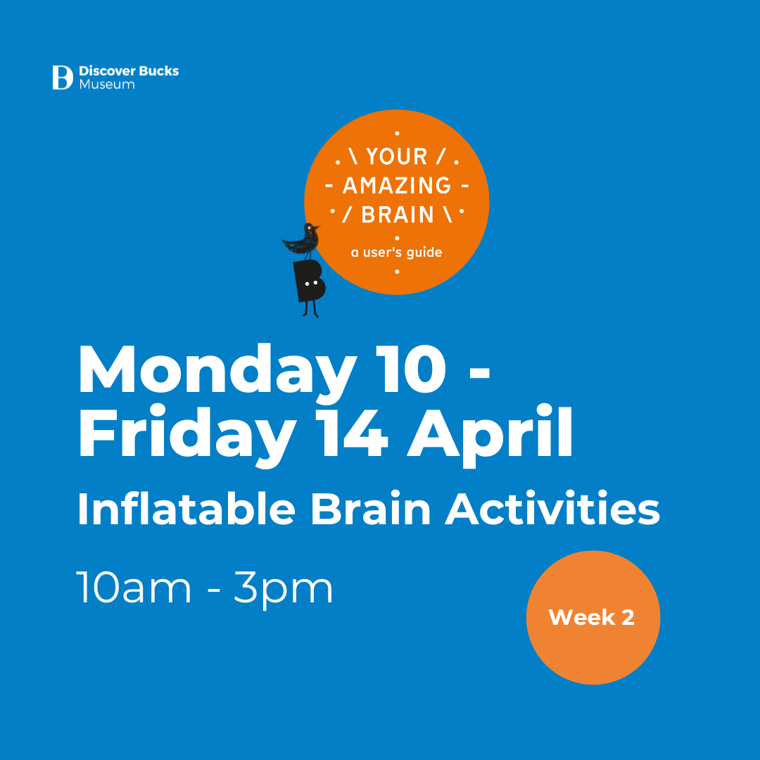 Enjoy our Easter Egg Trail at Discover Bucks Museum on every day over the holidays and during the second week enjoy our HUGE Inflatable Brain, you’ll even get to walk inside it! We will also have some self-led brain related activities for you to have a go at within the brain and in the room around it (plasticene brain, pipe cleaner neuron, brain thinking cap!)