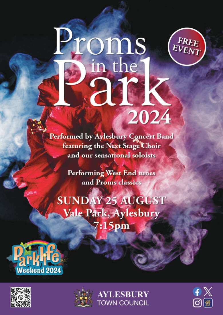 Proms in the Park: 7.15pm on Sunday 25 August: a spectacular evening as Aylesbury Concert Band teams up with the talented Next Stage Choir to bring you a magical night of West End hits. Plus traditional Proms anthems with incredible professional soloists!